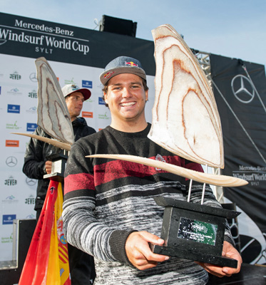 Neuer Weltmeister wurde Victor Fernandez Lopez aus Spanien, dem ein dritter Platz in Westerland reichte. Thomas Traversa gewann nach einer fantastischen Vorstellung den Waveriding-Wettbewerb auf Sylt und war nach seinem Triumph überglücklich. „Dieser Sieg bei dem größten Windsurf-Event der Welt, bei diesen Bedingungen in einem der schwierigsten Reviere überhaupt, ist etwas ganz Besonderes. Ich schwebe auf Wolke sieben“, sagte der Franzose nach seinem Triumph am Brandenburger Strand. Einen starken Wettkampf machte auch der Kieler Leon Jamaer, der sich zusammen mit Köster Platz sieben teilte.Mit der Siegerehrung am Brandenburger Strand wurde am Sonntag der Mercedes-Benz Windsurf World Cup Sylt feierlich beendet. Bei der größten Windsurf-Veranstaltung der Welt erhielten die Weltmeister in den Disziplinen Waveriding, Freestyle, Slalom und Foil vor hunderten begeisterten Zuschauern die begehrten Trophäen. In der Leichtwinddisziplin Foil sorgte Sebastian Kördel am Schlusstag für einen Paukenschlag, als der Radolfzeller Vizeweltmeister wurde. Der deutsche Windsurf-Profi Philip Köster schaffte nach der verpassten Titelverteidigung den Sprung auf das Podium der Gesamtwertung im Waveriding und schloss die PWA World Tour auf dem dritten Rang ab. |